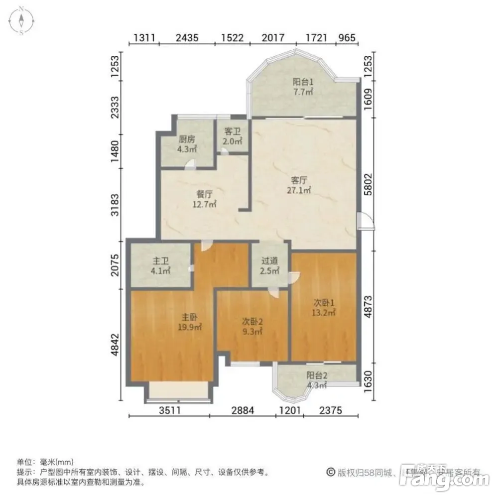 房屋户型方正,景观布局合理,设计实用,空间舒适,格局优越,采光通风良好