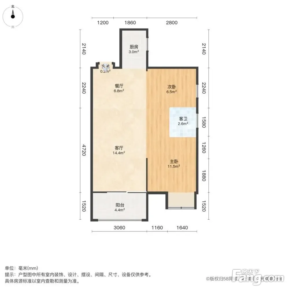 佰悦春天 园心 小户型 二房二厅 全新装修 装修材料好
