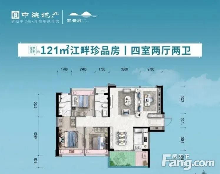 自盘 中海观云府 高实用白坯120平方4房2厅2卫