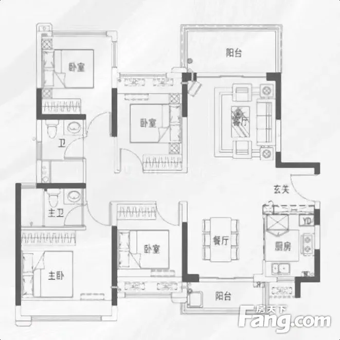 户型方正、南北通透、动静分区、空间利用率高、全明通透的采光。