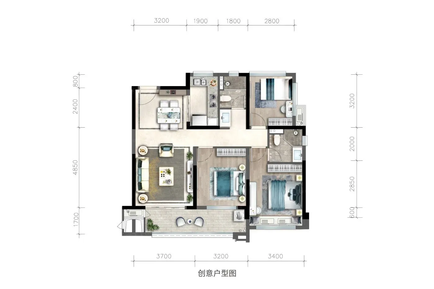 户型方正、南北通透、动静分区、空间利用率高、全明通透的采光。