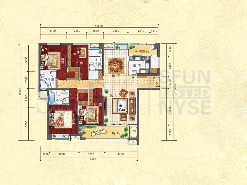 户型齐全,主打南北通透,露台四居