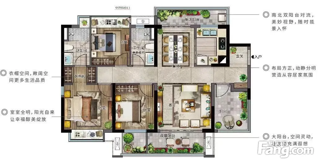 房屋户型方正,景观布局合理,设计实用,空间舒适,格局优越,采光通风良好