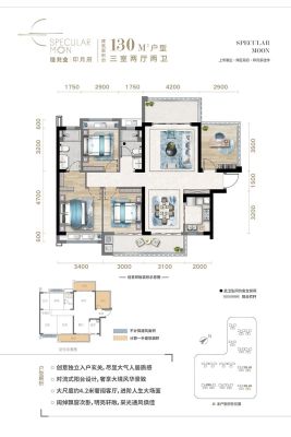 印月府户型主要有130平-148平的南北通透,户型方正,U型厨房,明厨明卫,双阳台的三居 、105平-107平的全明格局,主卧带卫的二居 。