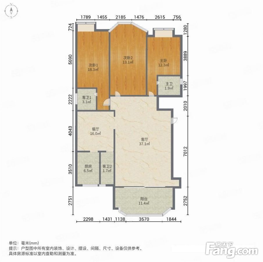 户型齐全,主打南北通透,客厅朝南三居