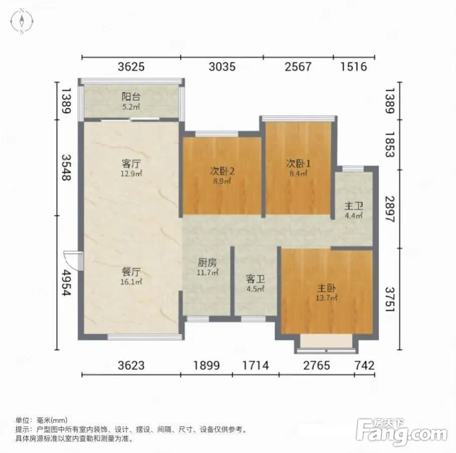 户型齐全,主打南北通透,主卧带卫,厨卫不对门,户型方正,观景飘窗,干湿分离三居