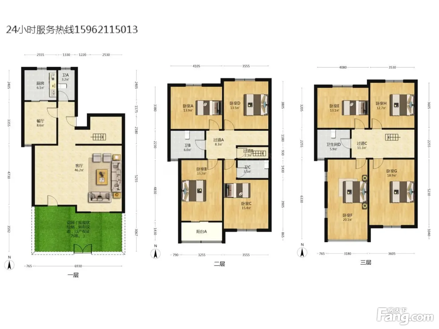 户型方正,两开间地上三层,采光无遮挡,实用面积多