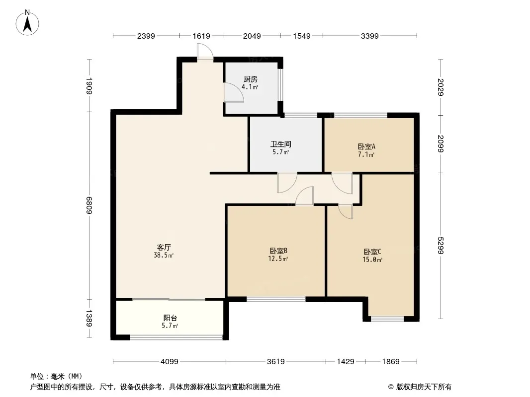 户型齐全,主打户型方正,明厨,明卫,双卧朝南,主卧朝南三居