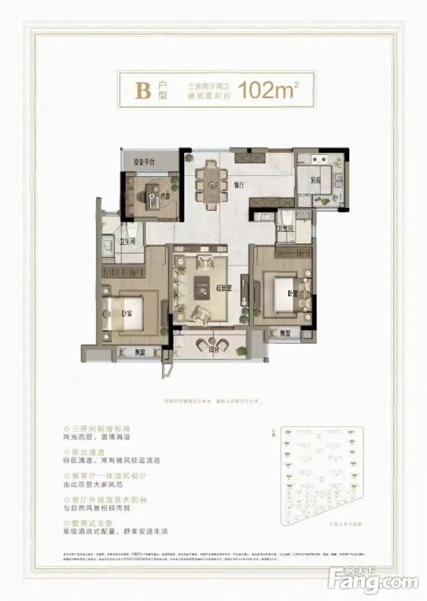 户型齐全,主打南北通透,卧室朝南三居