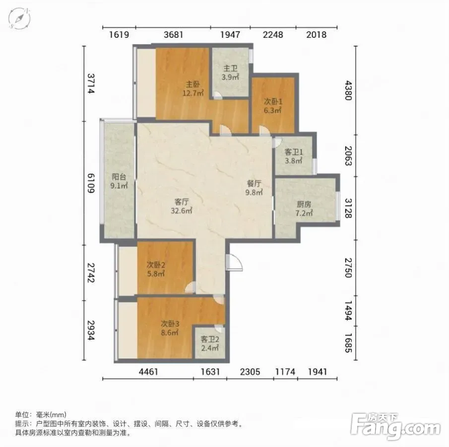 户型齐全,主打南北通透,全明格局三居