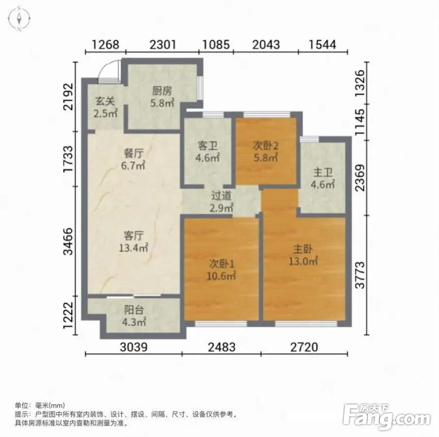 户型齐全,主打南北通透,卧室朝南三居