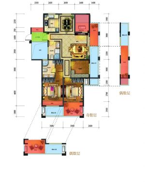 户型齐全,主打户型方正,明厨,双阳台三居