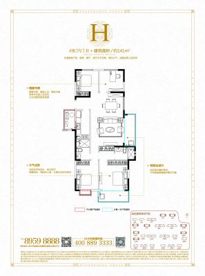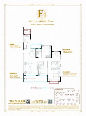 恒大珺睿府户型主要有120平-128平的南北通透,全明格局的三居 、141平-144平的南北通透,全明格局的四居 。