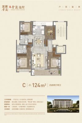 龙茂府户型主要有124平-168平的南北通透,全明格局的四居 、190平-220平的南北通透,全明格局,采光充足,观景落地窗,独立衣帽间,独立餐厅,带露台,独立庭院的五居 。