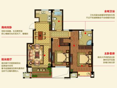 户型齐全,主打户型方正,明厨,明卫,客厅朝南,主卧朝南三居