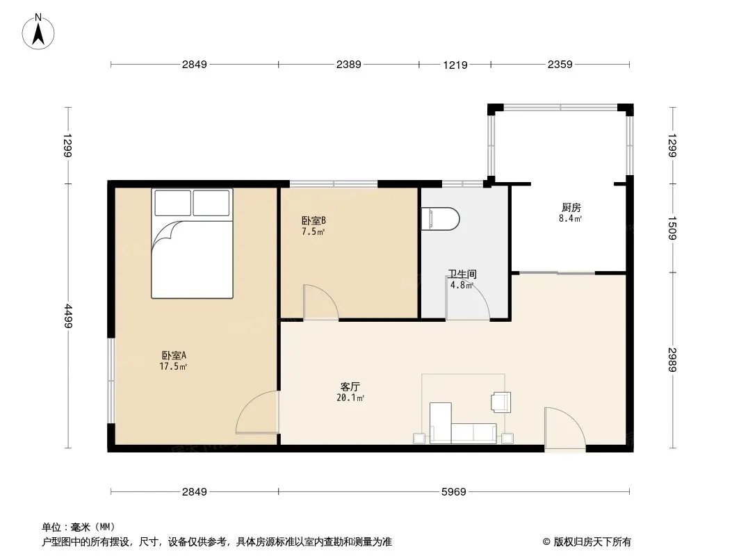 户型齐全,主打明厨,客厅朝南,主卧朝南二居