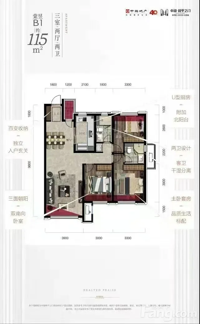 中海和平之门棠颂 3室2卫精装115平双学区价格低