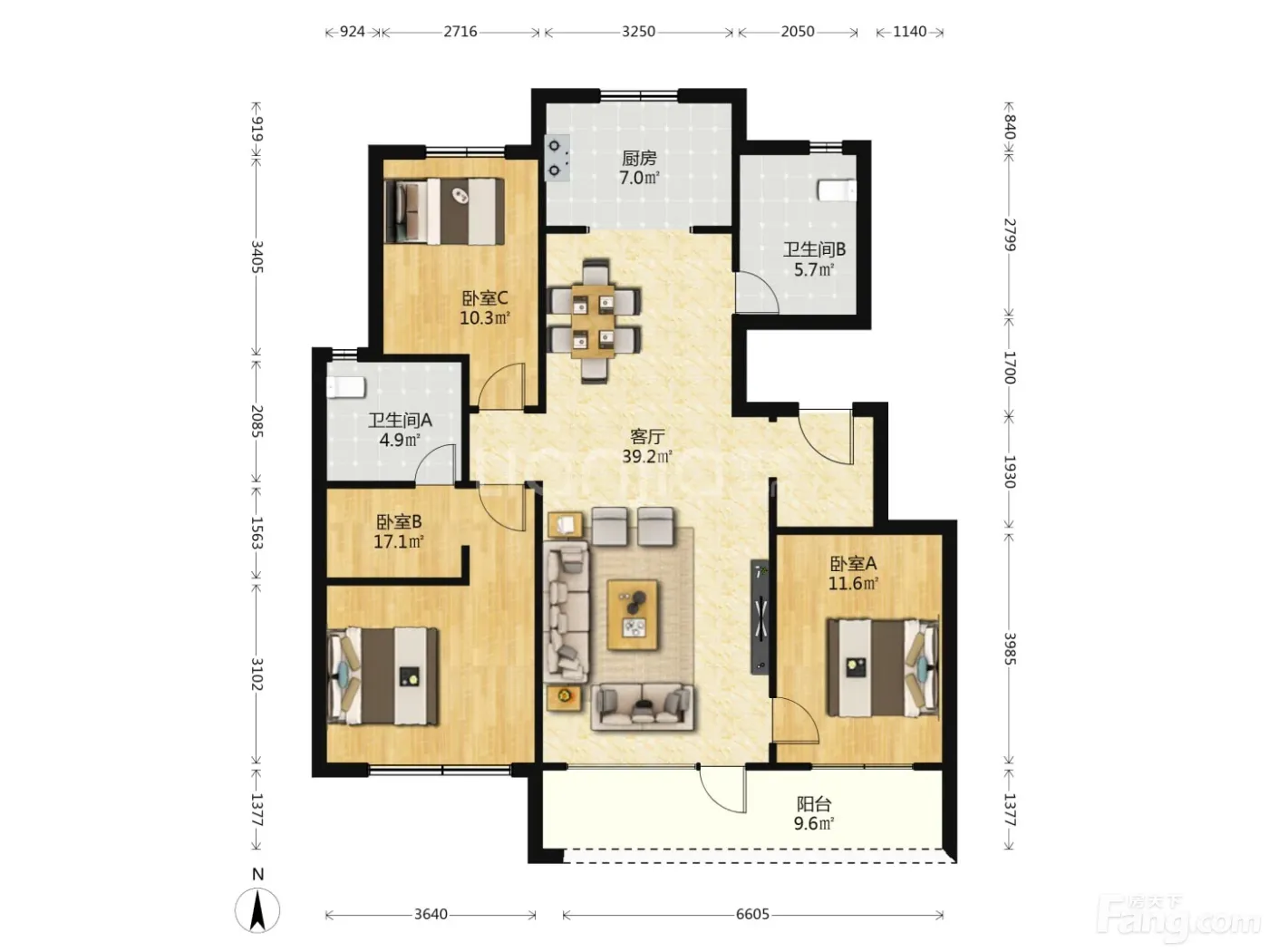 3室1厅2卫