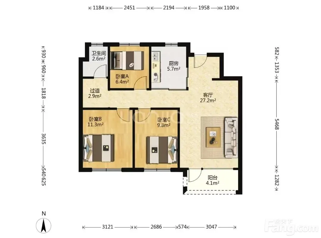 3室2厅1卫