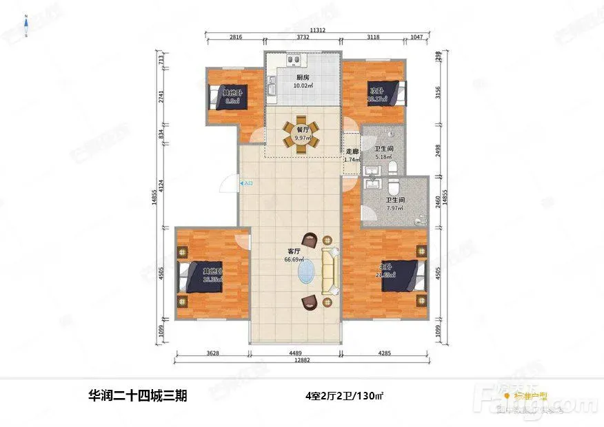 铁西 华润二十四城 3室2厅 130.27㎡ 230万