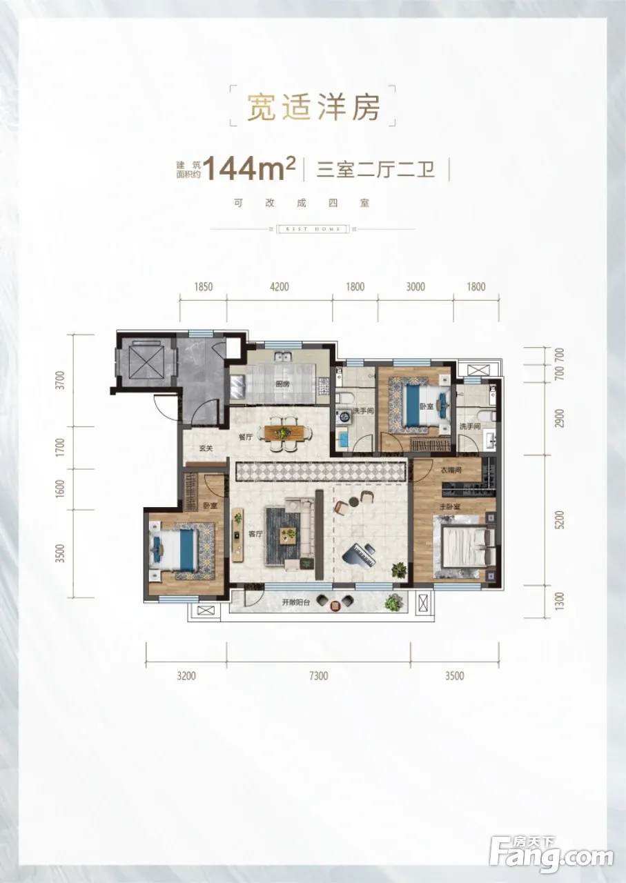 在这个改善为主的时代,实用型的住宅,将会成为新宠儿 这套全明户型,采用大开间、短进深,保证充足的采光,并且不浪费一丝面积 ,每个人都有独立的空间,互不影响,空间改造力十分强!