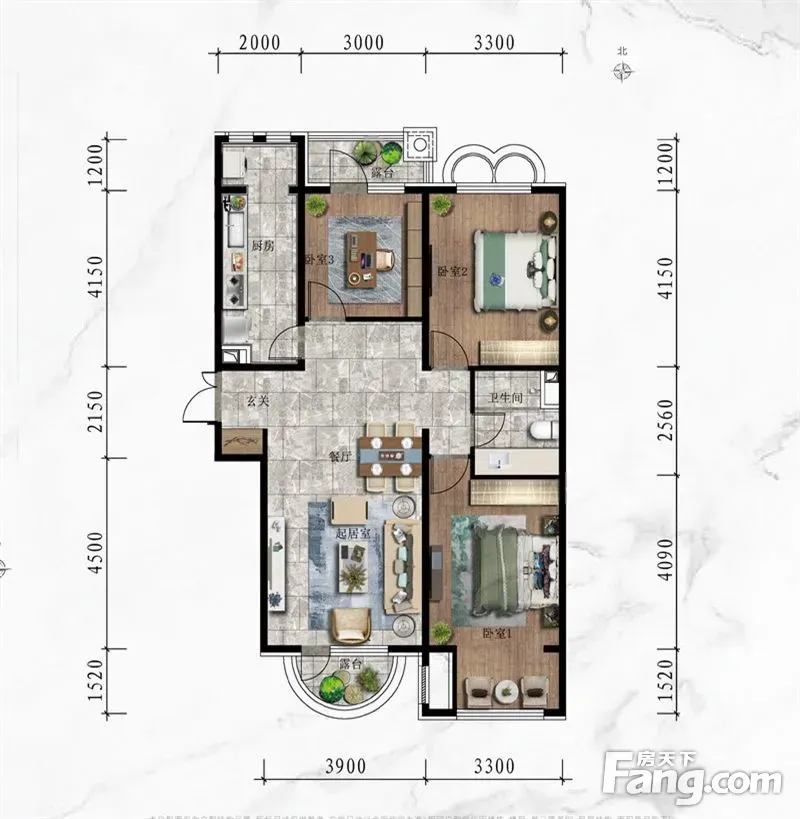 户型齐全,主打南北通透,露台三居