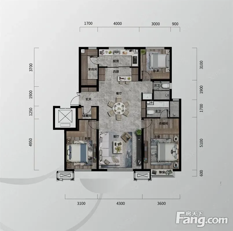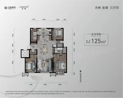 方林龙湖·云河砚户型主要有150平-150平的南北通透,客厅朝南,主卧带卫的四居 、125平-125平的南北通透,全明格局的三居 。