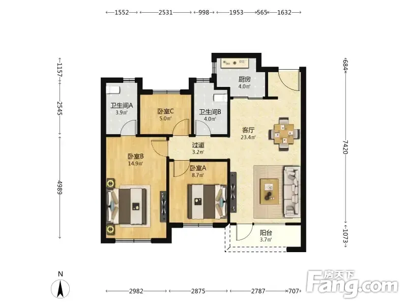 3室2厅1卫