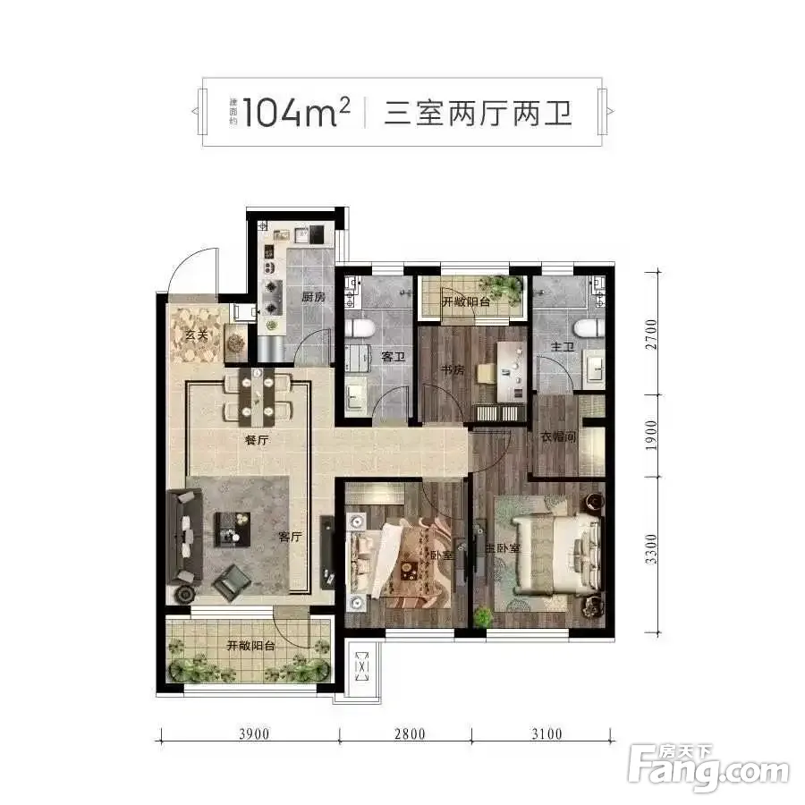 户型齐全,主打客厅朝南,卧室朝南三居