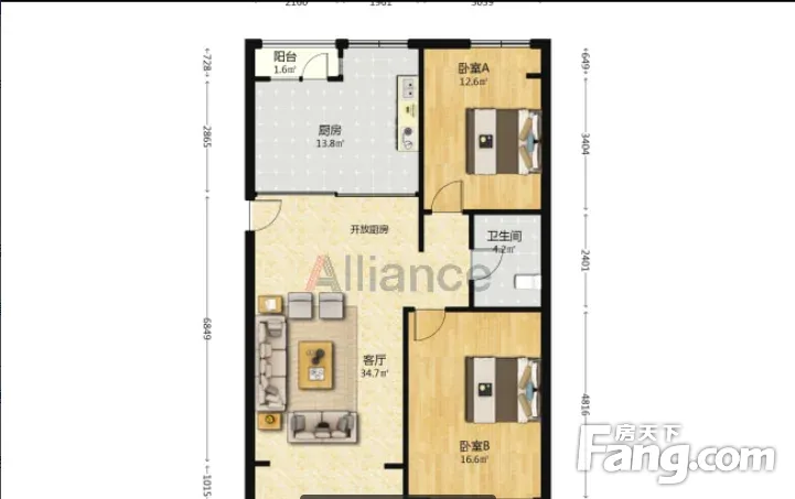 户型齐全,主打明厨,主卧朝南二居