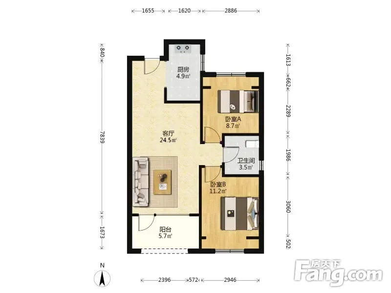 吾悦华府B1 2室1厅 80.64平