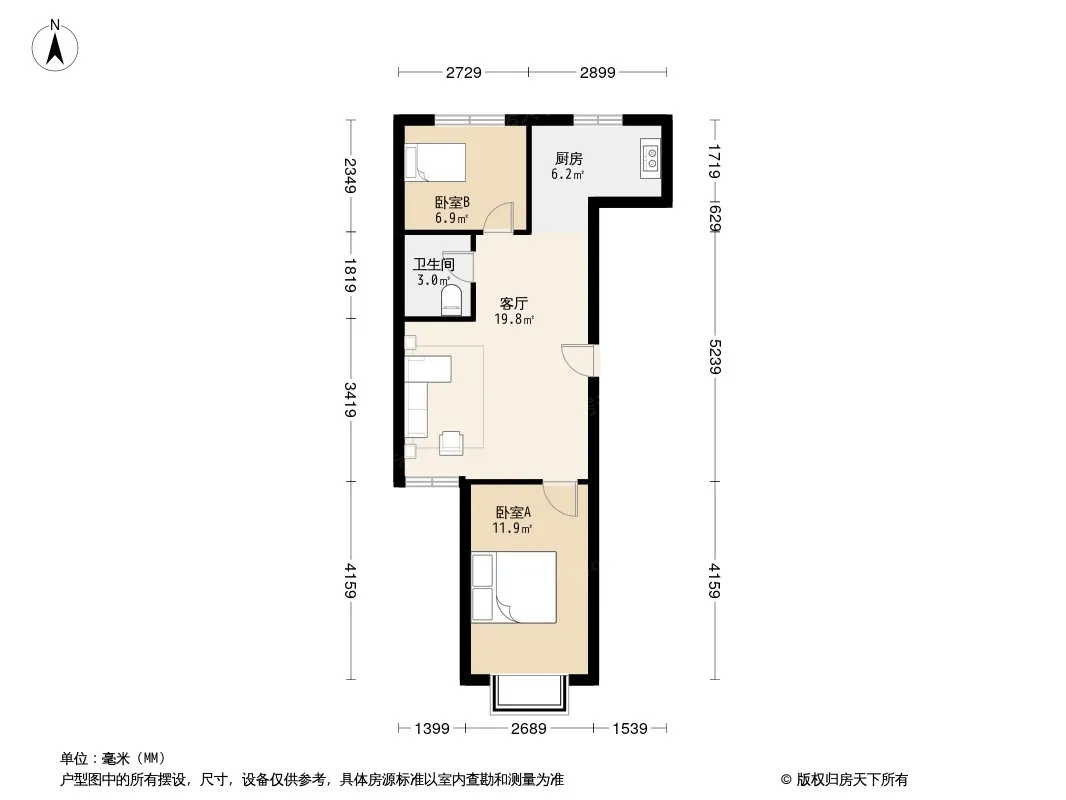 户型齐全,主打户型方正,明卫,明厨,客厅朝南,全明格局,主卧朝南二居