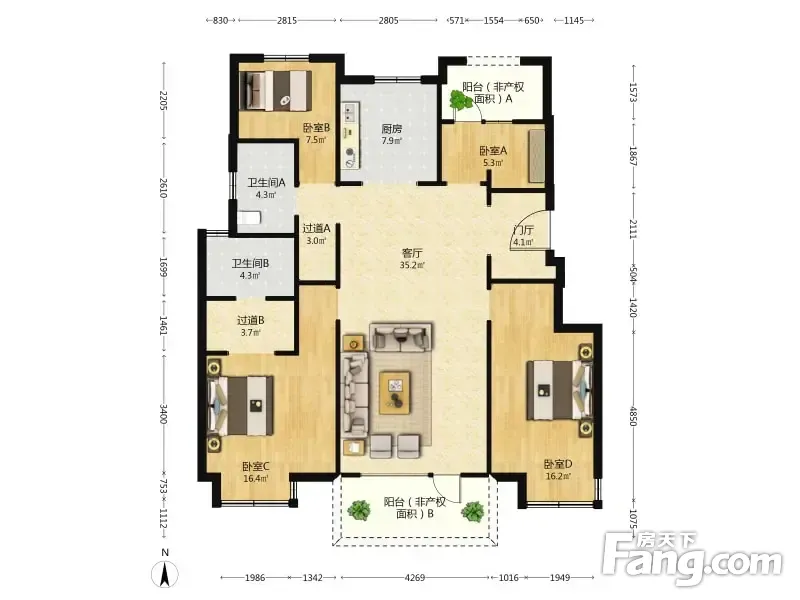 华润置地荣华府 4室2厅 154.65平