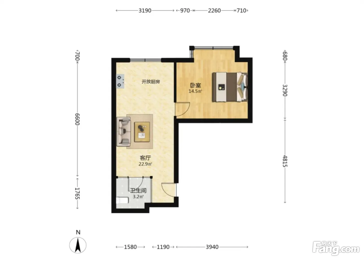 枫景名城 1室1厅 北