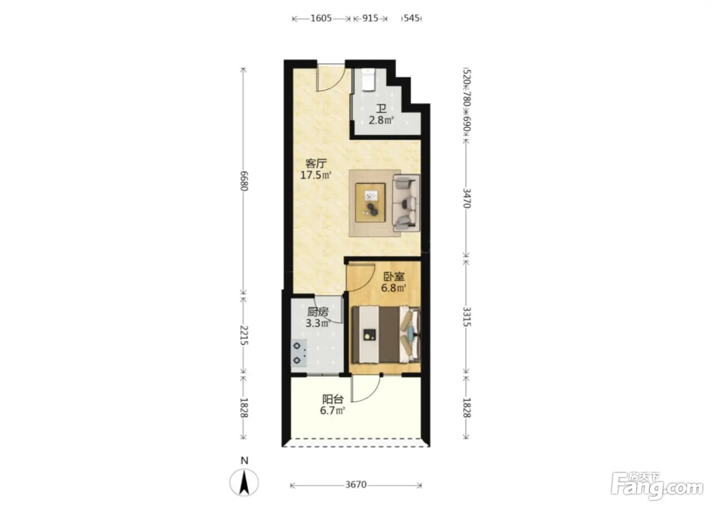 户型齐全,主打明厨一居