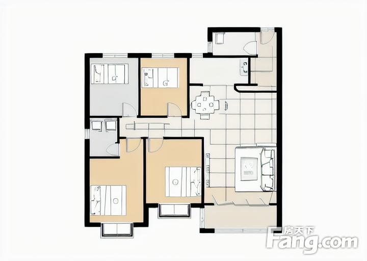 户型齐全,主打户型方正,明卫,明厨,双卧朝南,主卧朝南三居