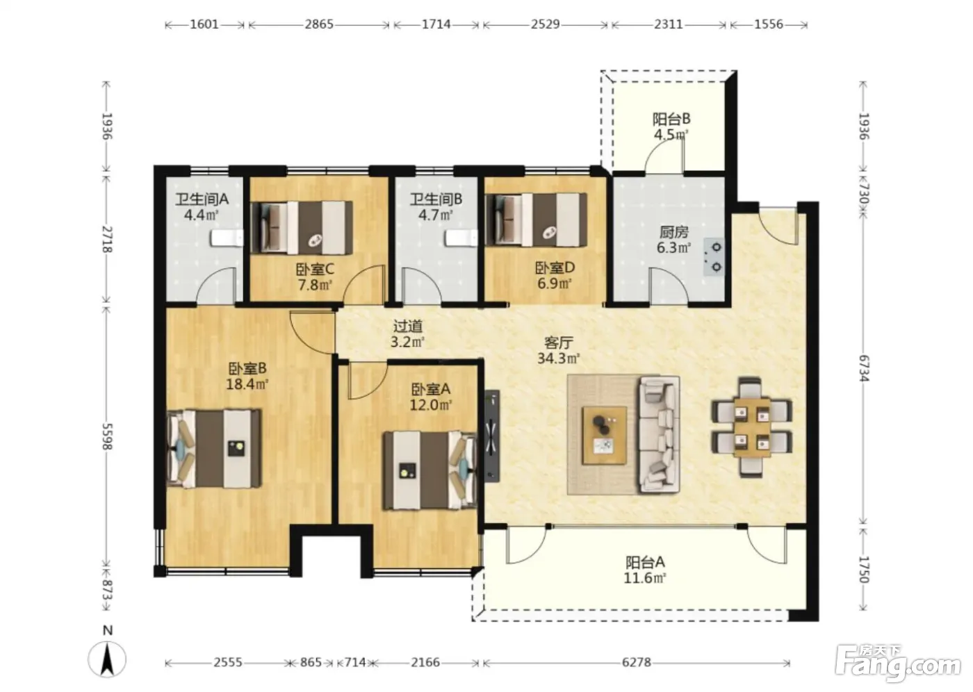 户型齐全,主打南北通透,户型方正四居