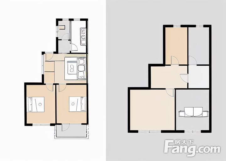 户型齐全,主打明厨,客厅朝南,主卧朝南二居