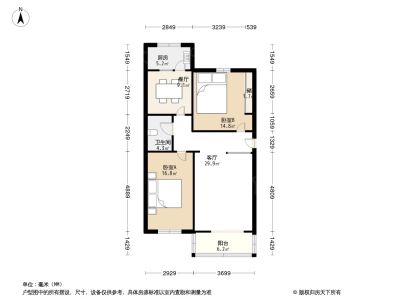 户型齐全,主打户型方正,明厨,客厅朝南,主卧朝南二居