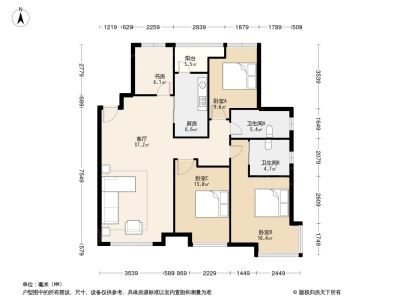 户型齐全,主打明厨,明卫,客厅朝南,全明格局三居