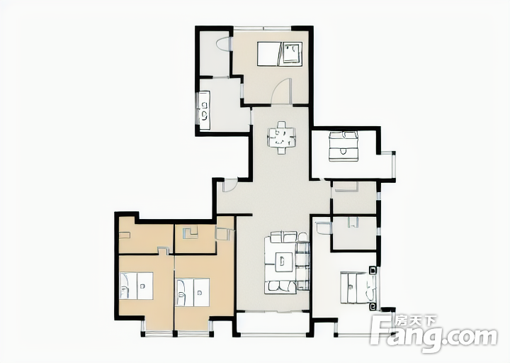 户型齐全,主打户型方正,明卫,明厨,客厅朝南,全明格局三居