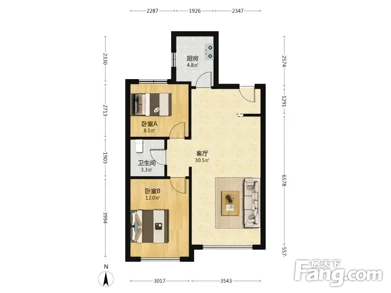 户型齐全,主打南北通透,户型方正二居