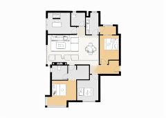 富力·尚悦居户型主要有79平-90平的户型方正,明卫,明厨,客厅朝南,全明格局,主卧朝南的三居 、61平-61平的全明格局,干湿分离的一居 。