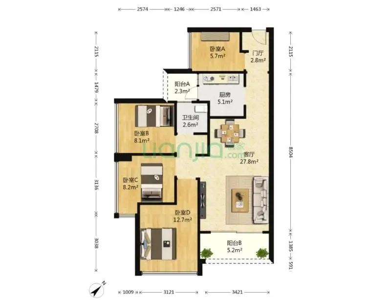 户型齐全,主打户型方正,厨卫不对门三居