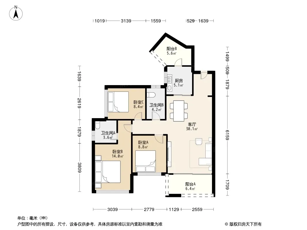 户型齐全,主打全明格局,户型方正三居