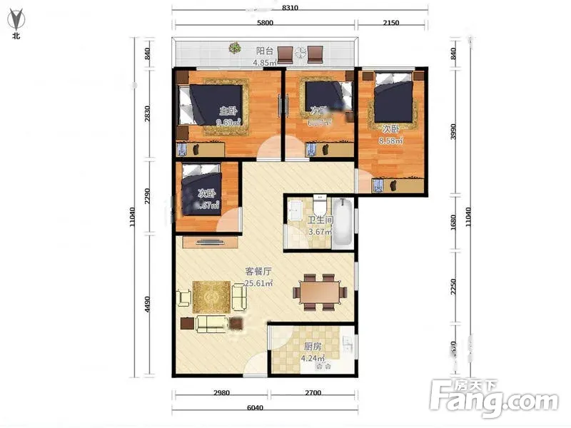 户型齐全,主打明厨,明卫,客厅朝南三居