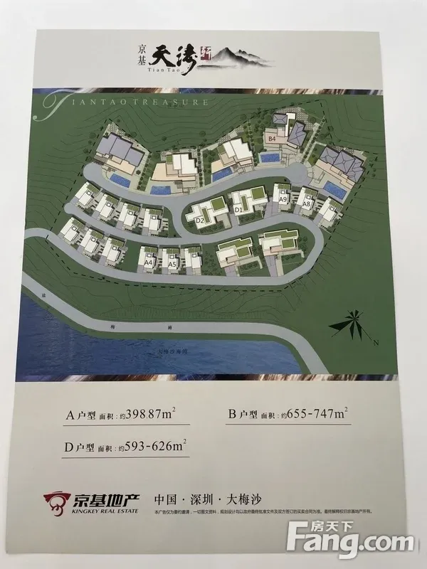 《京基天涛轩》山海独栋,户户大花园,游泳池,海景独栋别墅。 A户型398平上下四层,私家泳池,私家独立电梯,实用面积1000平,送花园面积200平,售价2880万。 D户型593平上下三层,私家泳池、私家电梯,面宽20米,实用1500平,送花园600平,售价5800万。 B户型655平上下五层,主副楼设计,实用面积2500平,私家双泳池、私家电梯,送花园1000平,售价8000万。