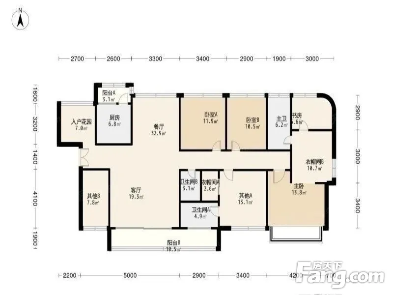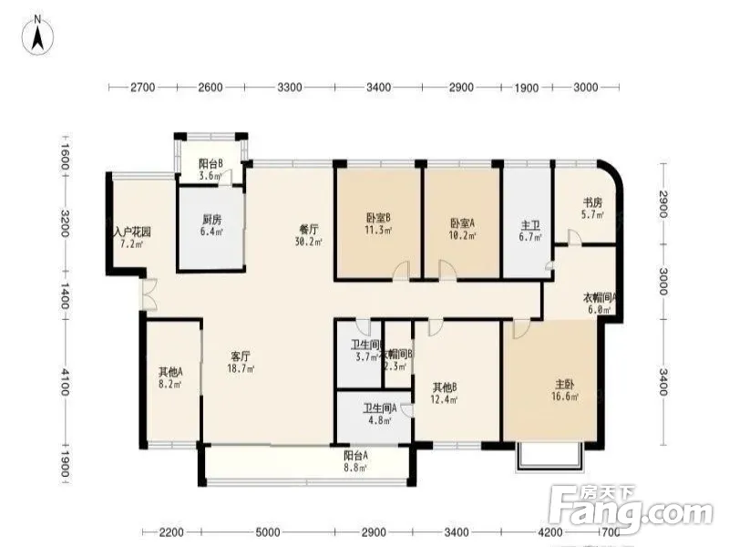 户型面积:260平,实用600平。毛坯8房,一手新房,入户大园,南北通透,户型方正大气