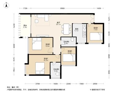 户型齐全,主打明卫,明厨四居
