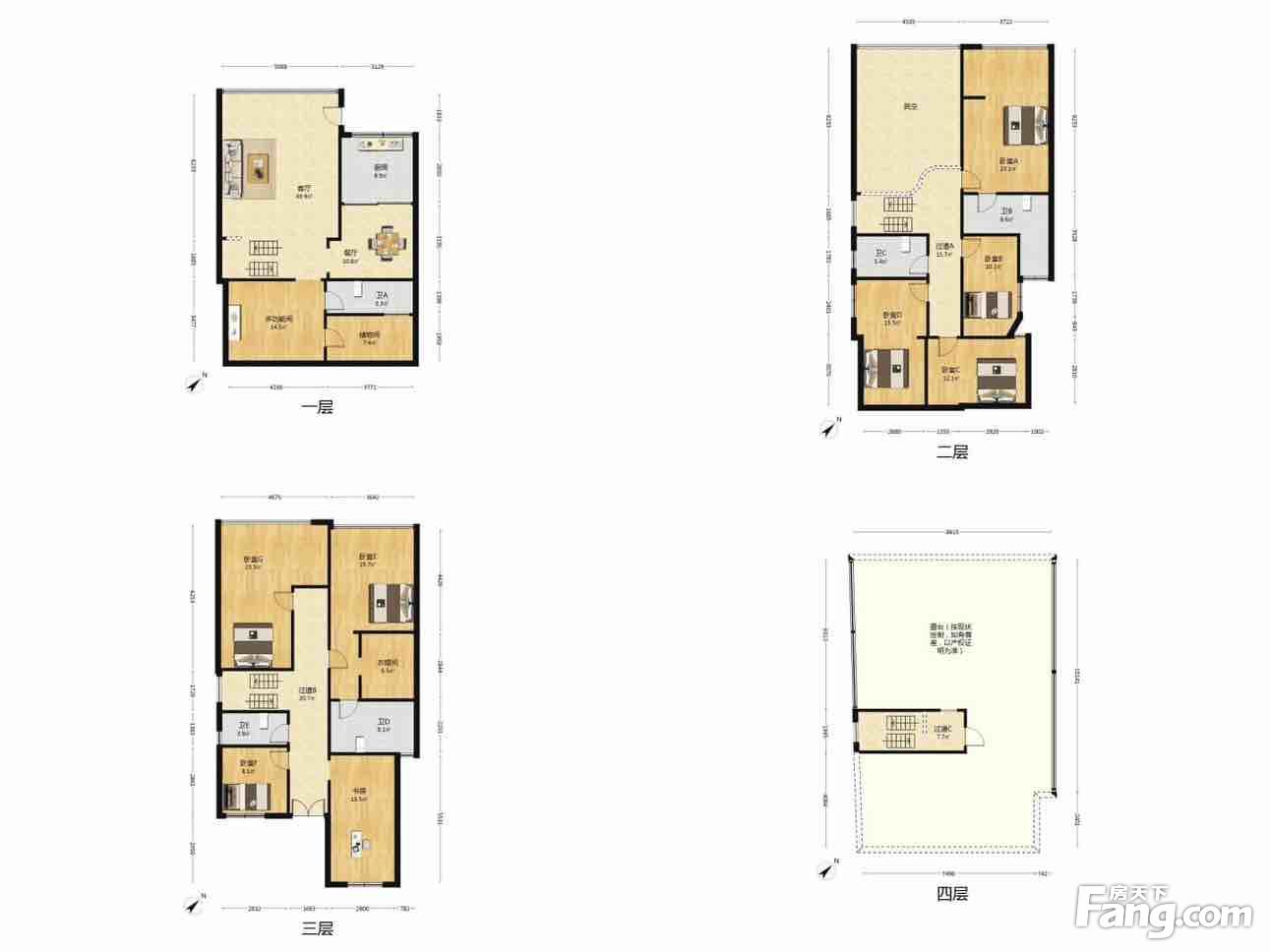 此房产权面积约216平米,四面都能采光,坐北朝南,2车位
